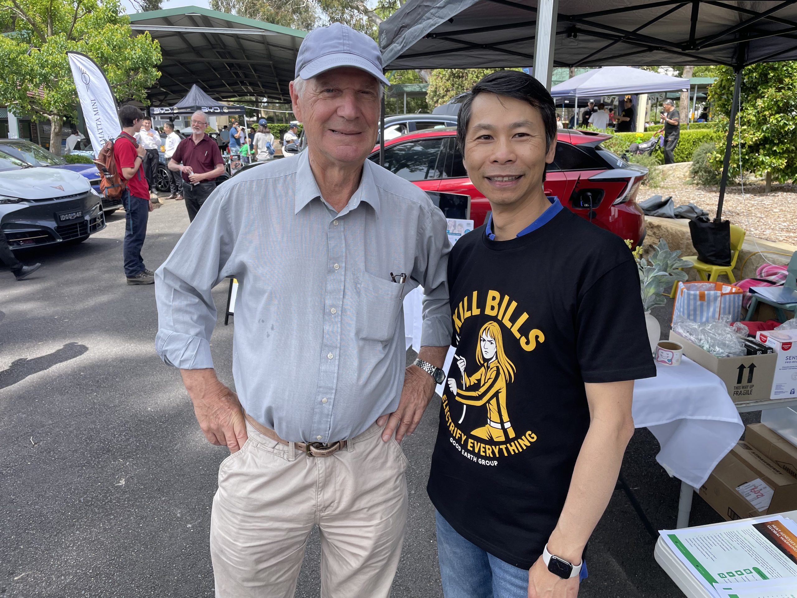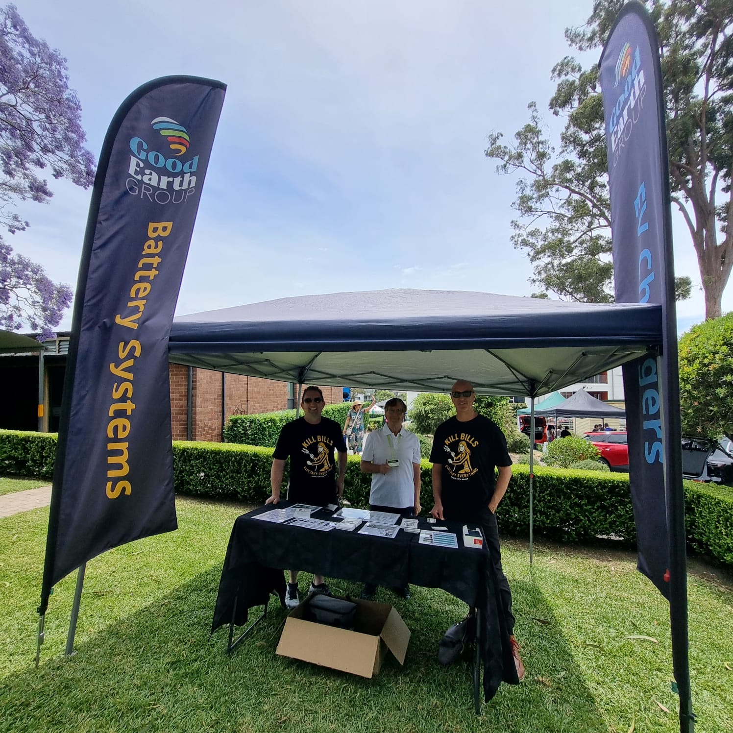 Lorenzo and his team from the Good Earth Group came to show visitors how rooftop solar + home batteries + EV charging = savings for you (hence the “Kill Bill” t-shirts) and the planet!