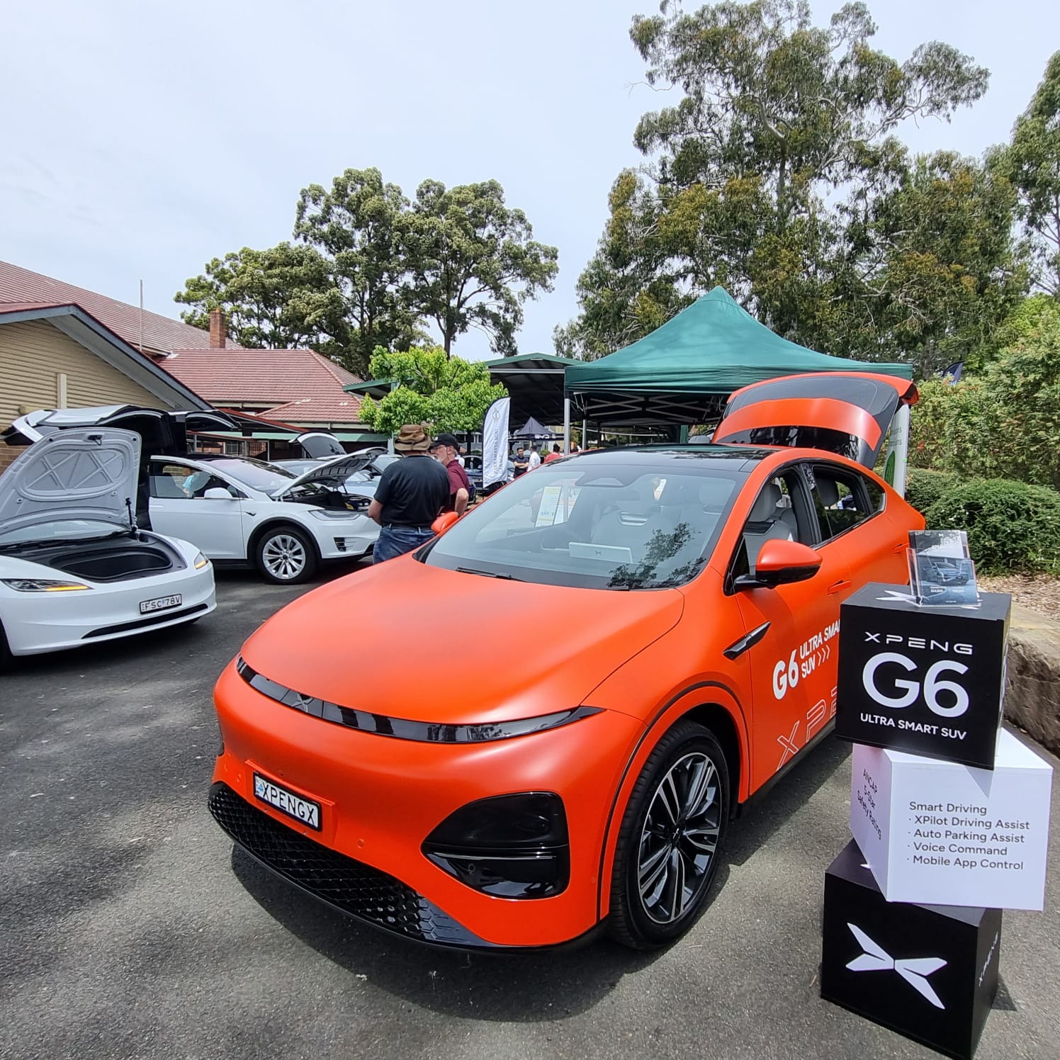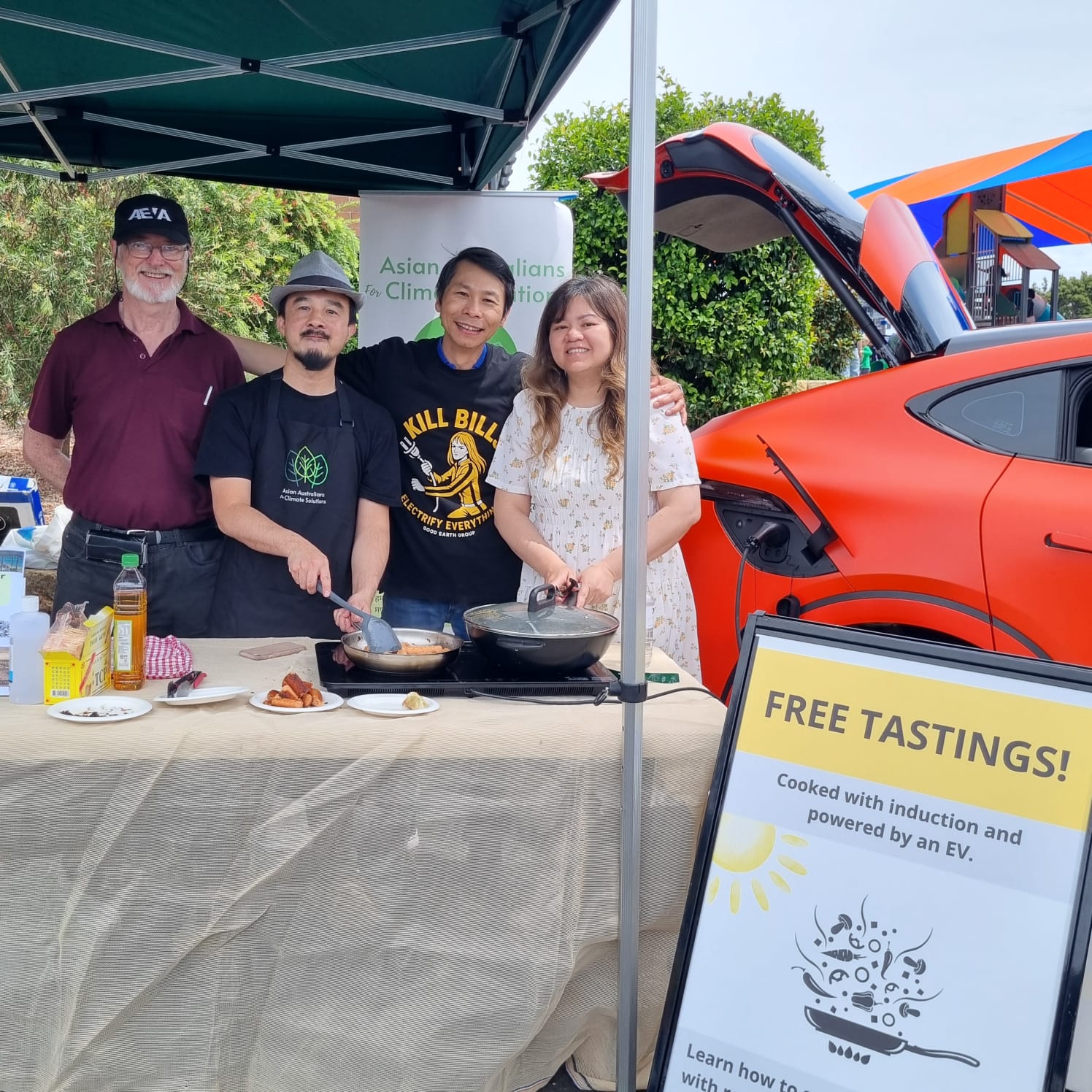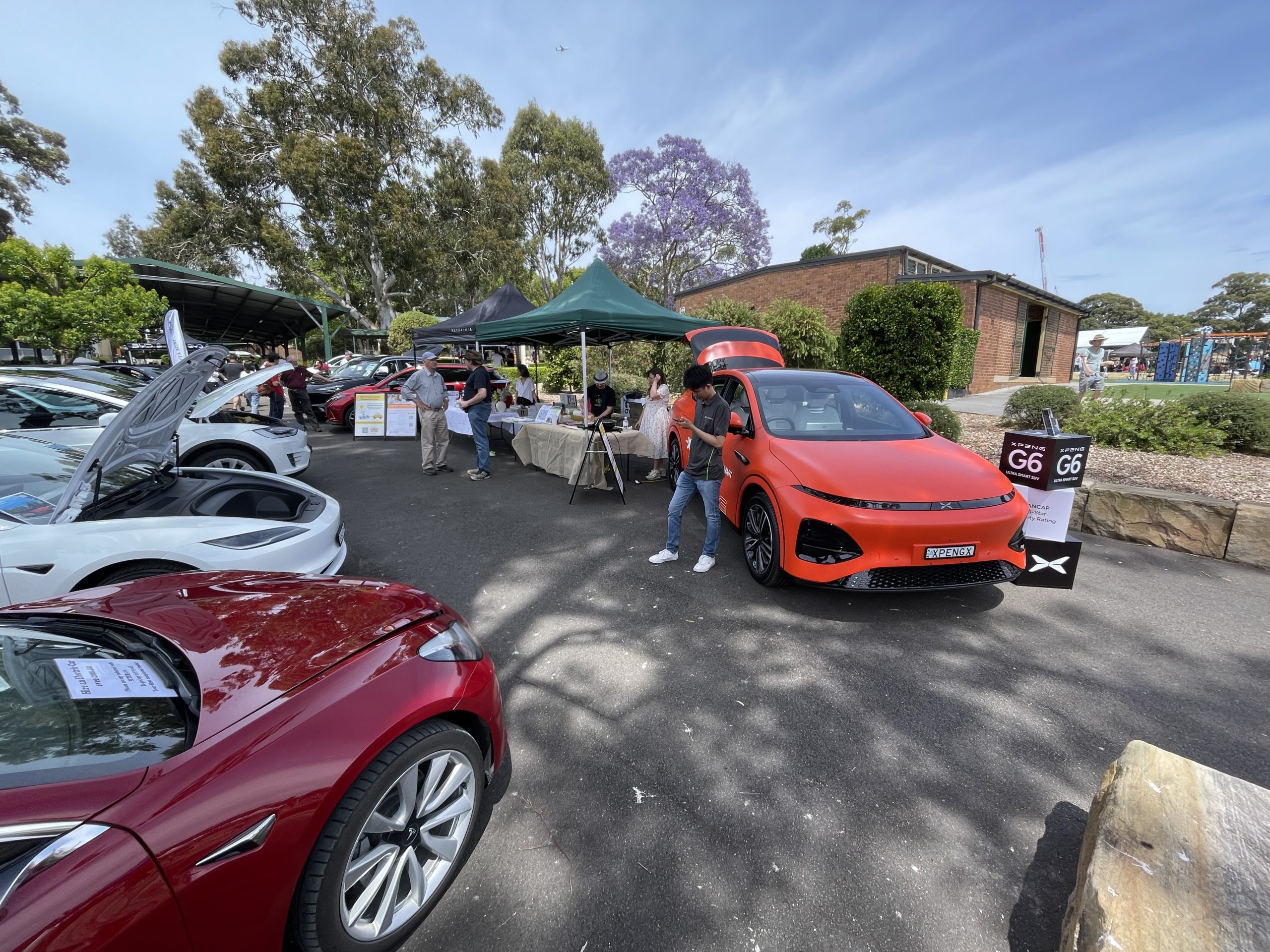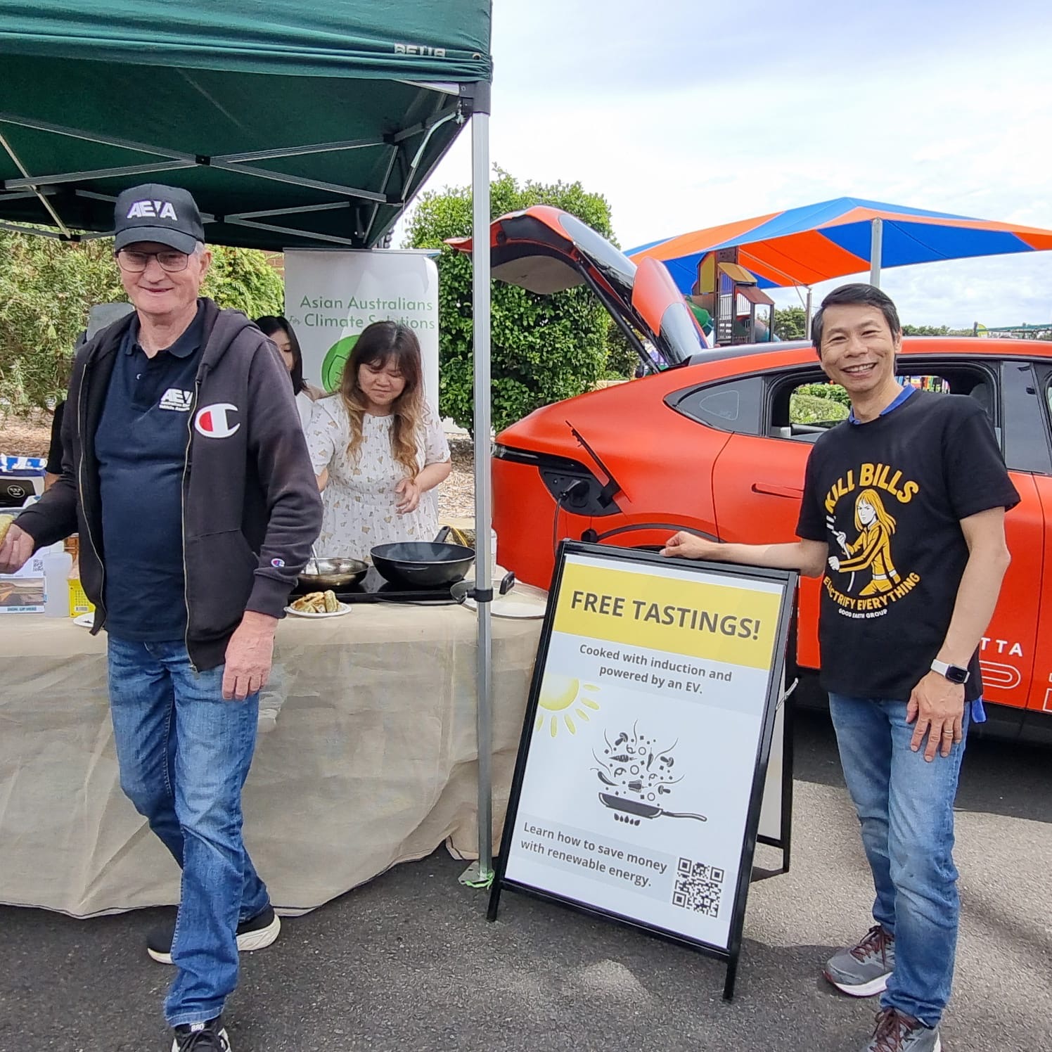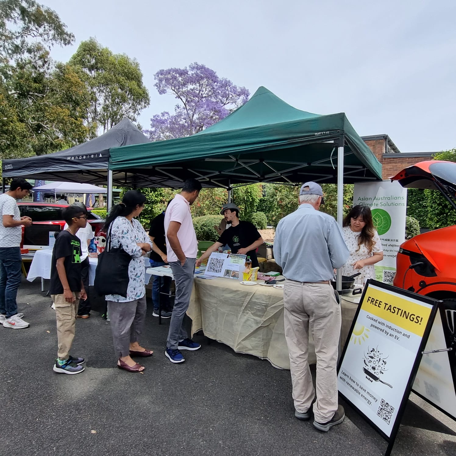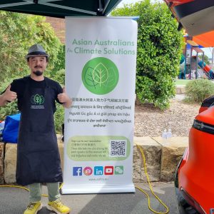 Michelle from Carlingford Dental Surgery and Louie from the Asian Australians for Climate Solutions (AAFCS) had engaging conversations with visitors while cooking free and delicious vegetarian sausages and dumplings – all powered by the Xpeng G6’s V2L capability!